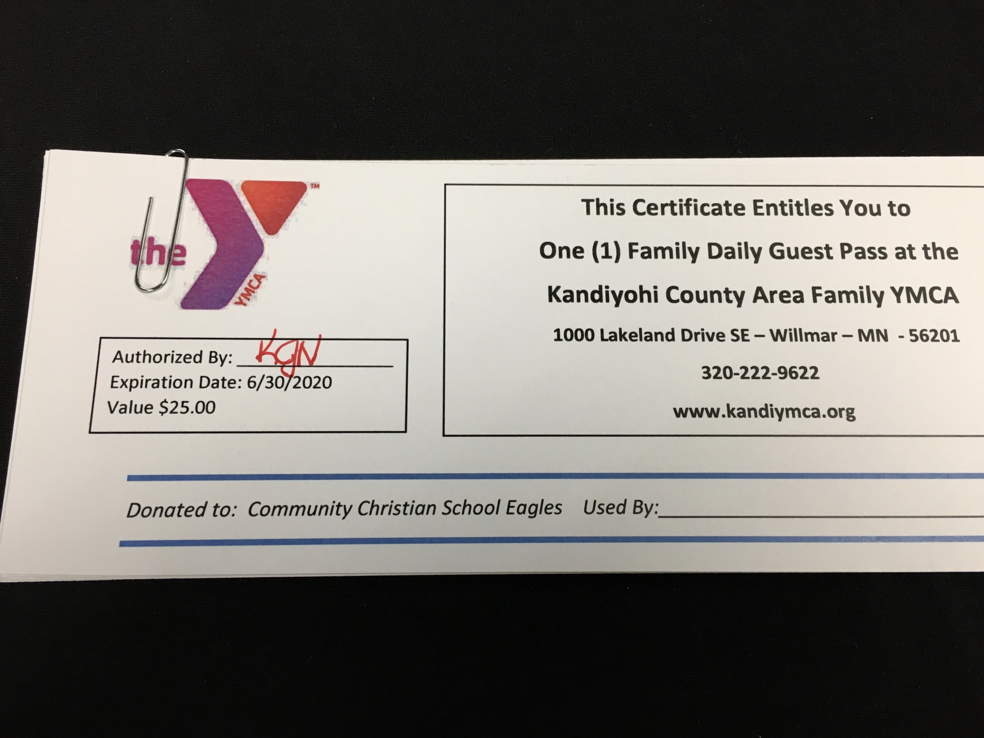 YMCA Two Family Day Guest Passes- they will honor until 12-31-20