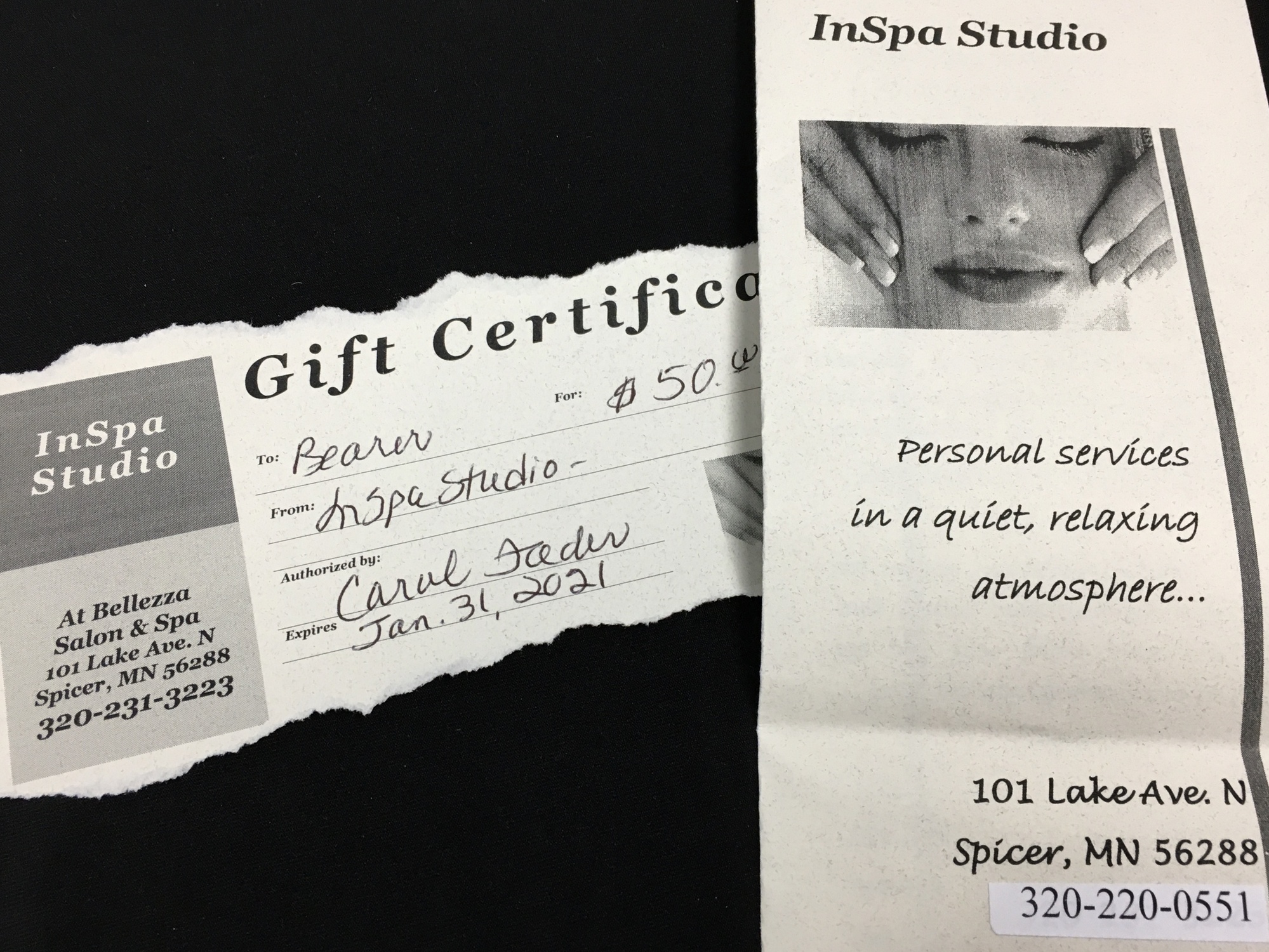 InSpa Studio $50 gift certificate